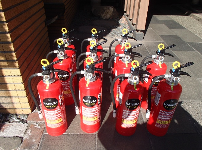 ①旧消火器               ②新消火器